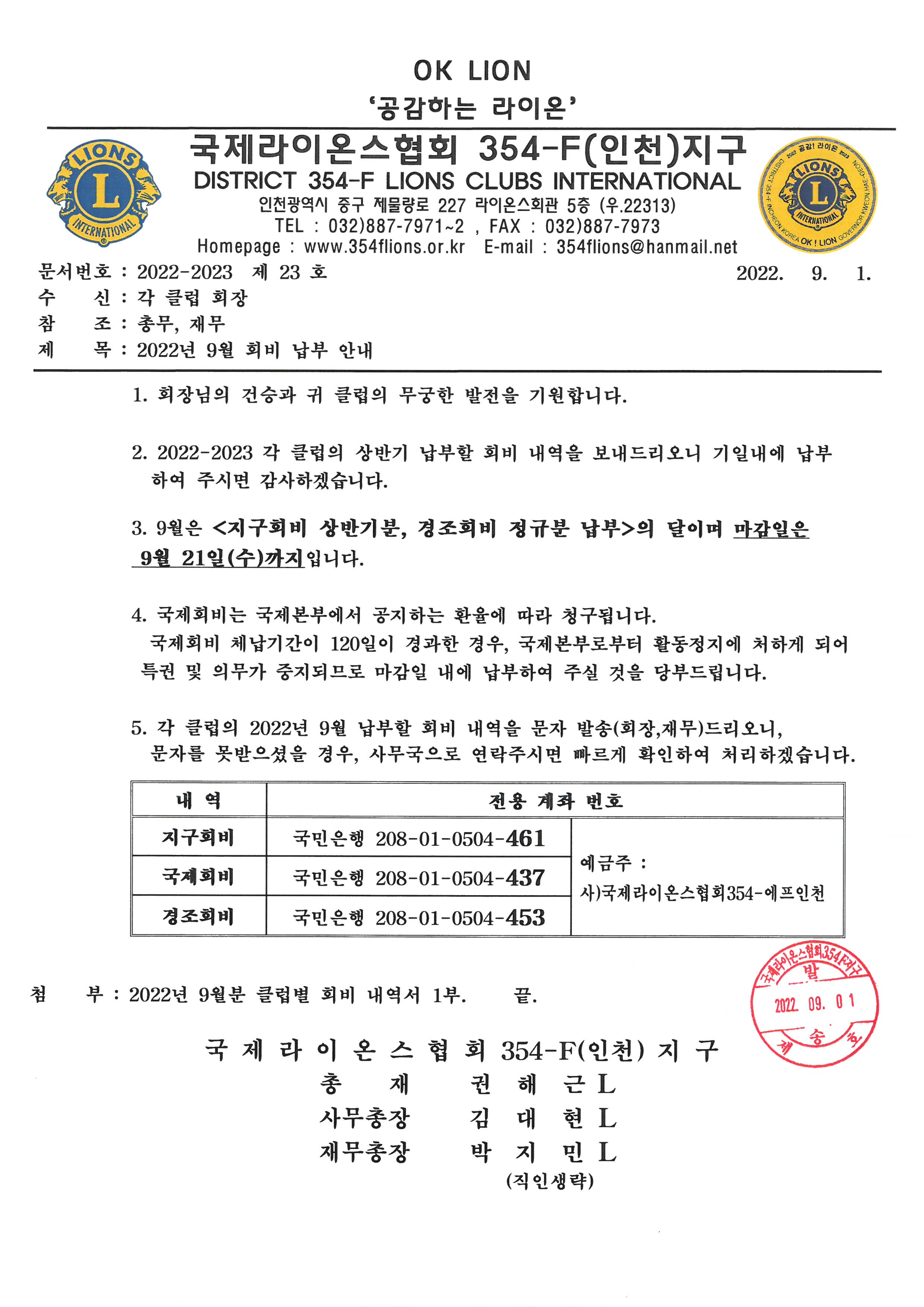 ●2022년 9월 회비 납부 안내입니다.