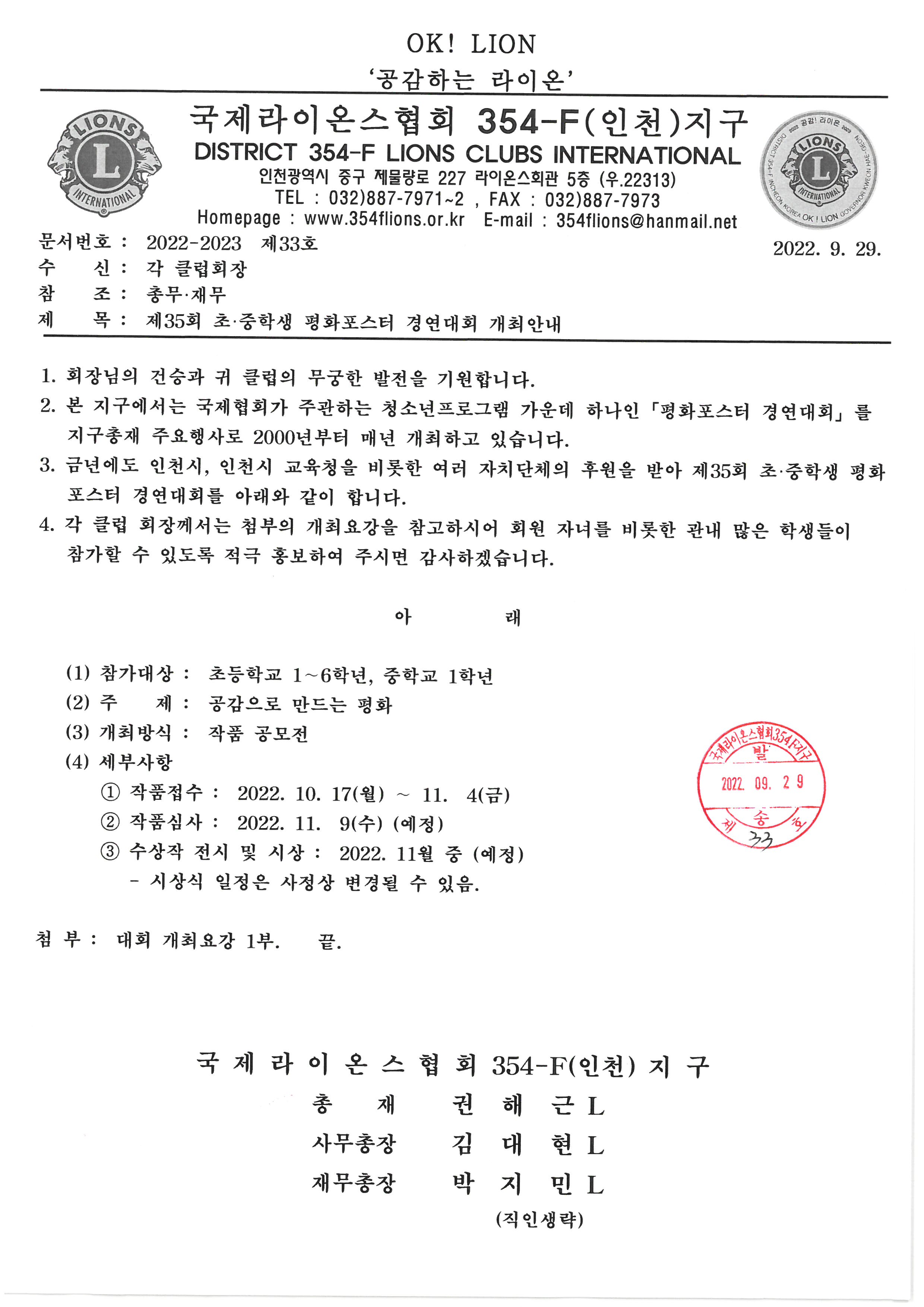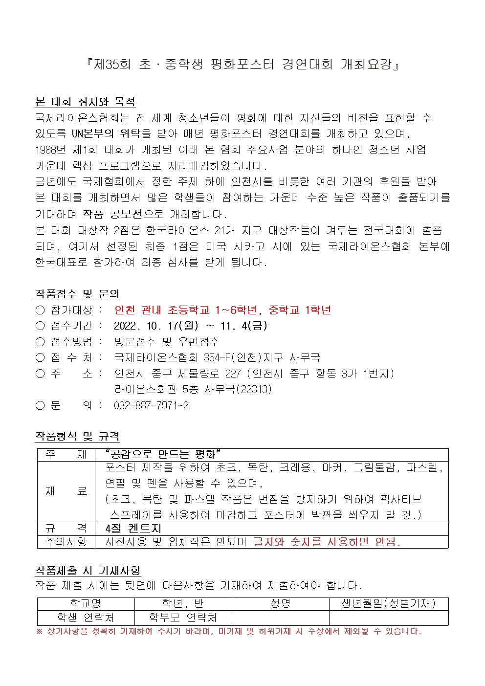 ● 제35회 초·중학생 평화포스터 경연대회 개최안내