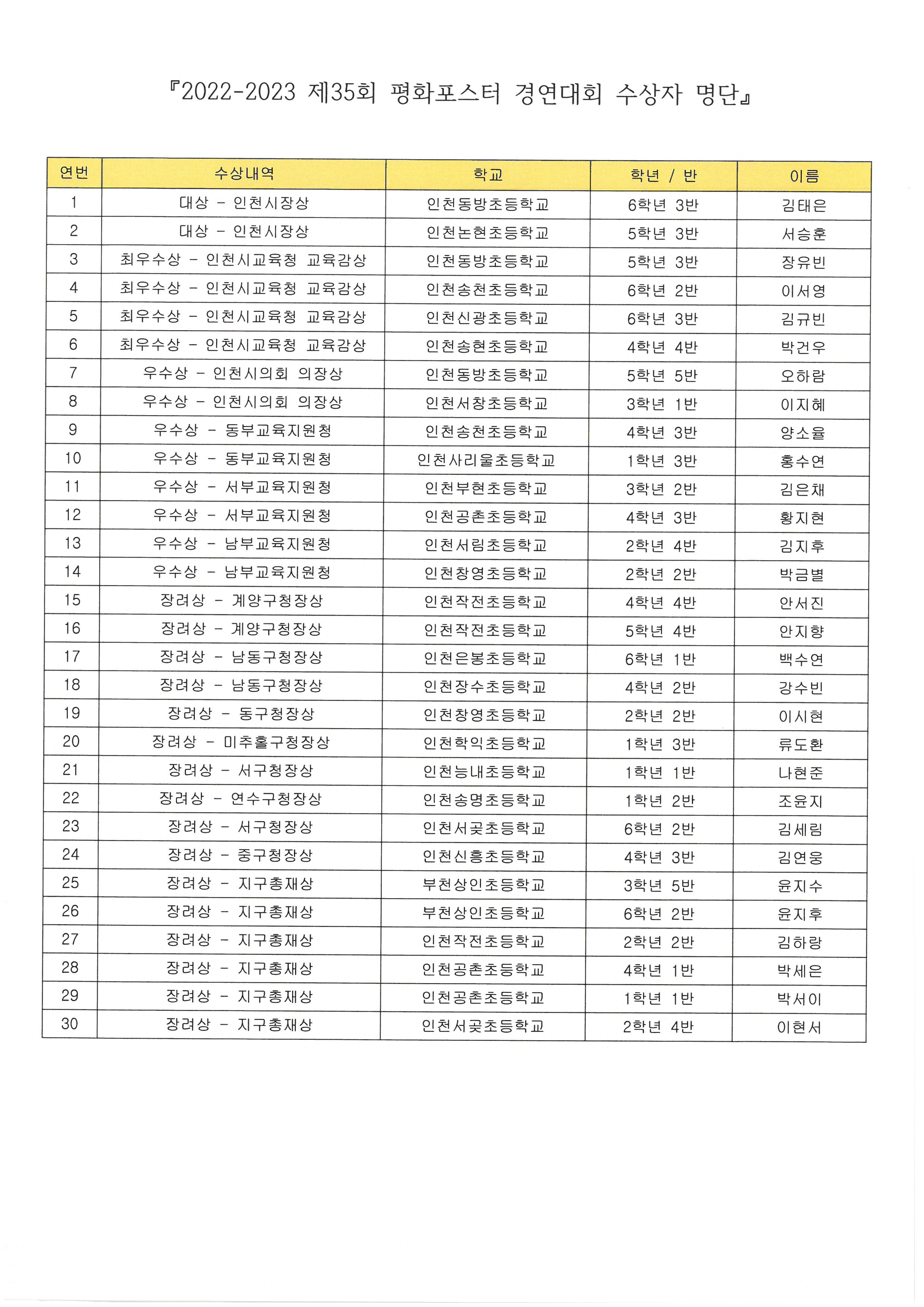 제35회 평화포스터 경연대회 수상자 안내