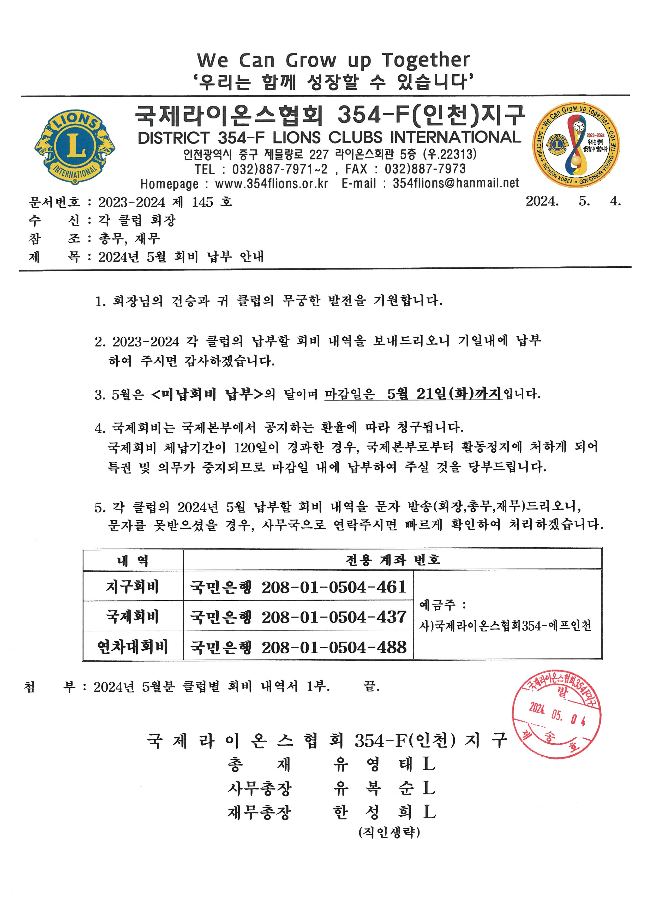 2024-2025 지구총재, 지구제1·2부총재, 지구감사 선출 대의원 선거 결과 안내