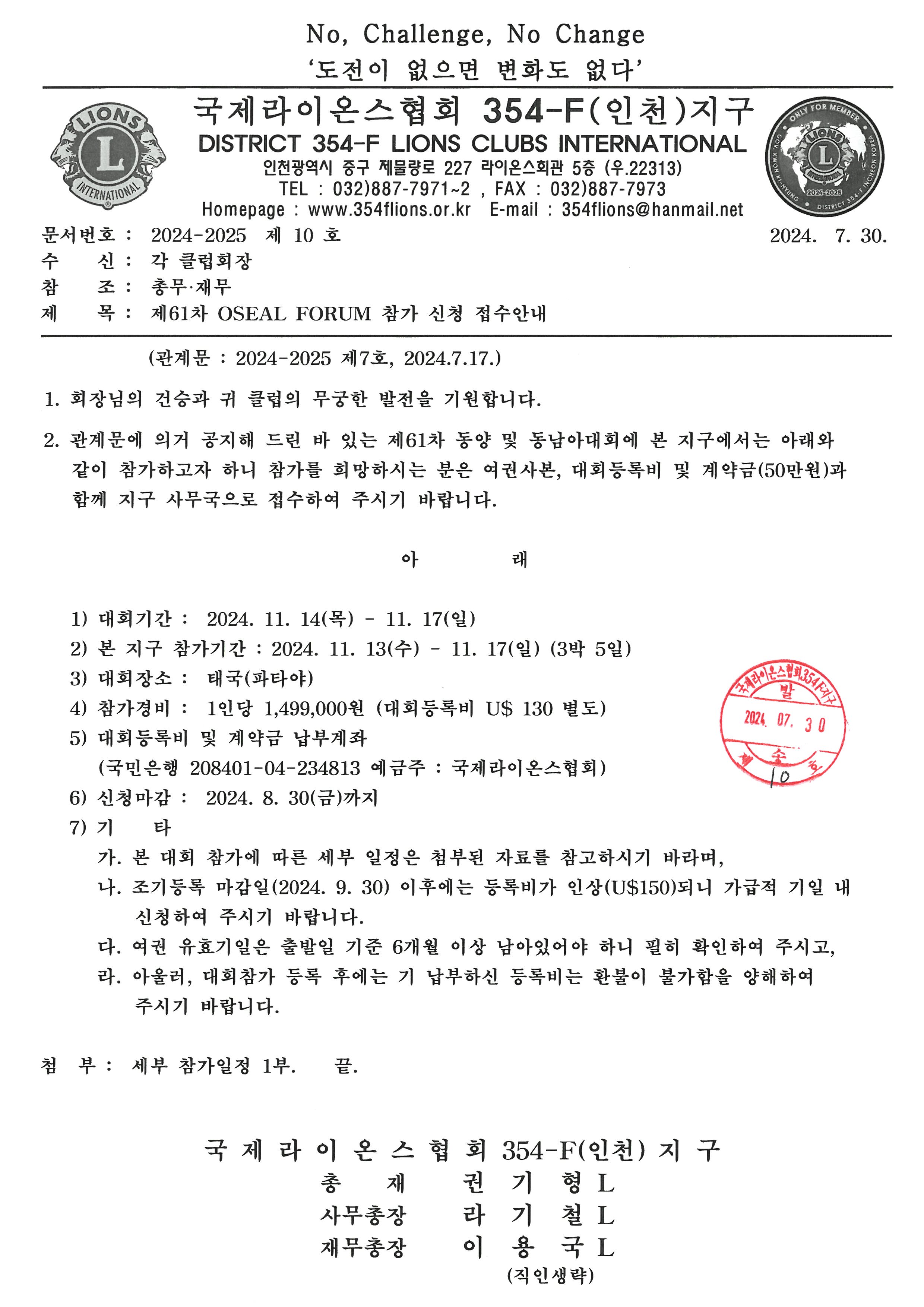 2024-2025 지구임원 및 클럽 4역 연수회 개최 안내
