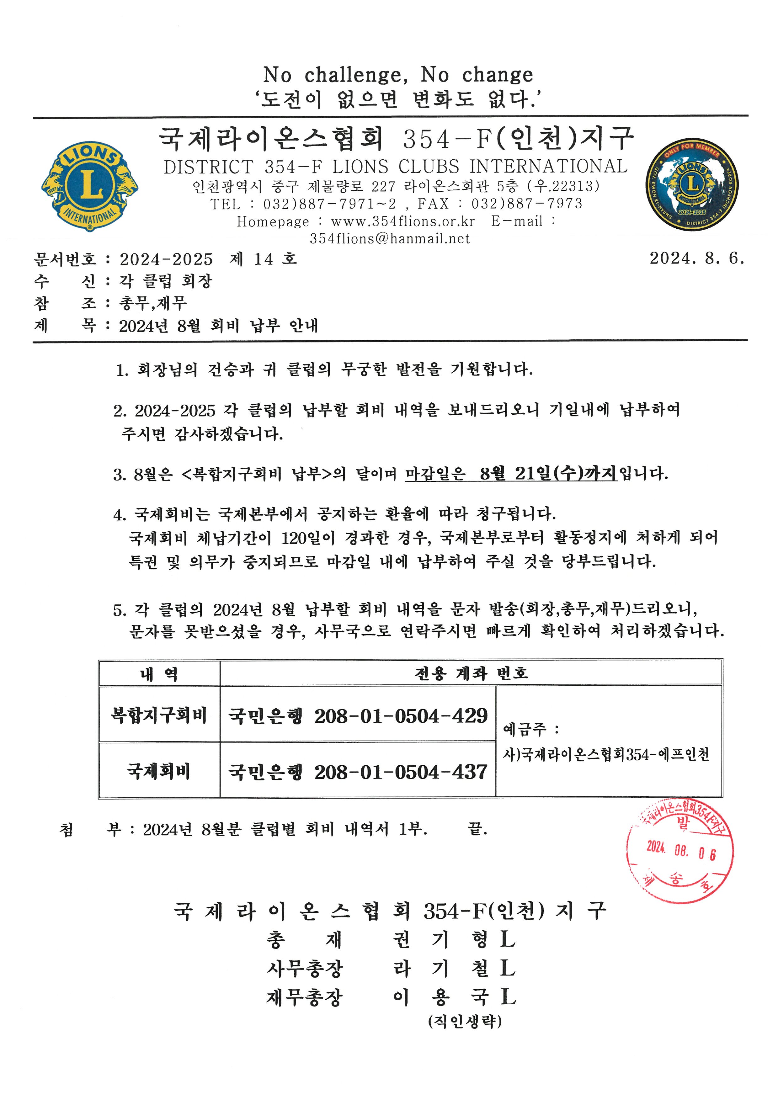 354복합지구 제1차 초급라이온스 지도력연수회(ELLI) 참가신청 안내
