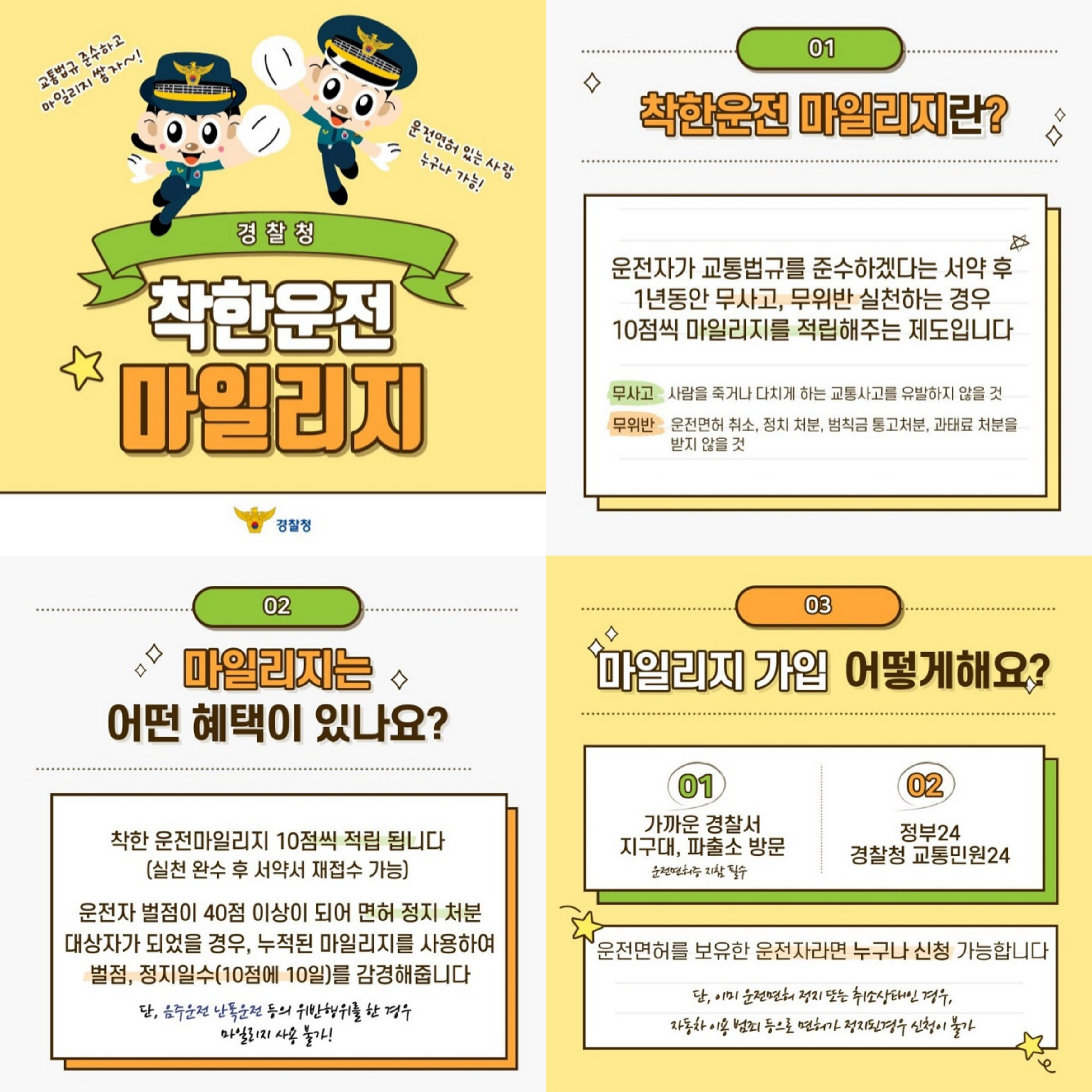 10월 4주 중부경찰 치안소식입니다. 1. 항상 헷갈리는 우회전 방법을 한 눈에 확인하세요. 2. '착한운전 마일리지'를 아시나요? 마일리지 제도 혜택과 가입방법을 확인하세요 언제나 함께하는 중부경찰입니다. 궁금하신 치안소식이 있으시면 말씀해주시기 바랍니다. |