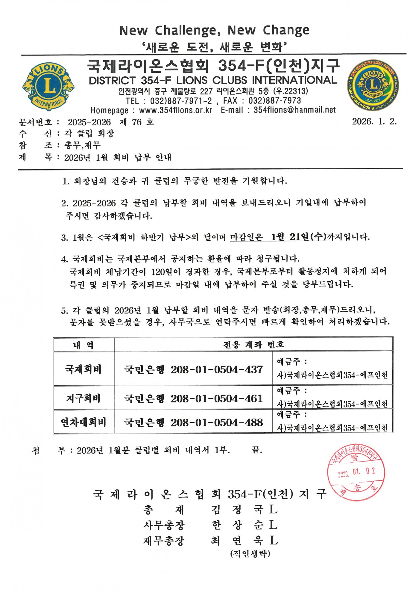354복합지구 제2차 초급라이온스 지도력 연수회(ELLI)연수회 개최의 건